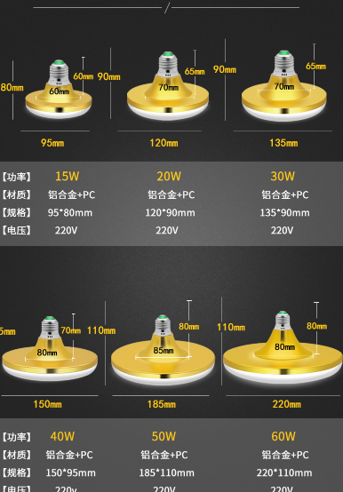 飛碟燈輕盈小巧的飛碟燈 詳細介紹產(chǎn)品介紹: 采用率恒流電源控制,散熱器使用鋁材表面進行陽極氧化處理防腐蝕、內(nèi)部使用導熱銅管快速傳導光源所散發(fā)熱量,從而使得散熱效果,了光衰更小、壽命更長。 產(chǎn)品特點: 1.高透光率PC透明罩及防眩光PC乳白罩,設計合理;2.采用西鐵城原裝進口COB光源、3030光效燈珠,具有亮度高,導熱率高,光衰小,光色純,無重影,等特點; 3.鋁制散熱體設計,與電器盒結合,內(nèi)置導熱有效將熱量傳導擴散,從而降低燈體內(nèi)的溫度,了光源和電源的壽命; 4.散熱體表面進行陽極氧化防腐處理。 5.節(jié)能效果明顯,普通節(jié)能燈的耗電量比較大,是LED工礦燈的3倍以上。 6.綠色環(huán)保,不含鉛、汞等污染元素,對環(huán)境沒有任何污染; 7.顯色性好,對實物顏色的呈現(xiàn)更真切。各種光色可選。 8.采用恒流控制,適用電壓寬克服了因鎮(zhèn)流器產(chǎn)生電網(wǎng)、噪音污染和引起的燈光不穩(wěn)定; 9.兩種安裝方式,吊環(huán)安裝以及E40燈頭轉接設計,更加人性化。