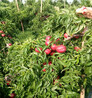 桃苗修剪:a.修剪應(yīng)注意事宜桃樹苗的枝分為發(fā)育枝和結(jié)果枝兩類,幼樹上發(fā)育枝較多,其前端葉芽延伸生長,擴大樹冠,下部腋芽抽生結(jié)果枝。進入結(jié)果期后,大部分一年生枝頂芽為葉芽外,腋芽多為花芽,稱為結(jié)果枝。結(jié)果枝依長度分為長果枝(15~20厘米)、中果枝(5~15厘米)、短果枝(5厘米左右)、花簇狀果枝(1~2厘米)。從結(jié)果能力看,長果枝座果力較差,一般在40%左右;中果枝結(jié)果能力因品種而不同;短果枝座果率高,果實品質(zhì)亦佳;花簇狀果枝是盛果期旺樹上的主要結(jié)果枝,座果率能達80%左右。果實品質(zhì)較佳,而且壽命長,可連續(xù)結(jié)果10~20年。結(jié)果枝和花簇狀果枝是產(chǎn)量形成的基礎(chǔ)。中國桃樹苗、酸桃樹苗在初果期,長、中果枝的比例大,而在盛果期則短果枝和花簇狀果枝為主。b.幼樹的修剪為了促使幼樹早結(jié)果,在整形的基礎(chǔ)上,對各類枝條的修剪程度要輕,以生長期的摘心為主。以控制枝梢旺長,增加分枝,加迅擴大樹冠。冬季修剪時間應(yīng)推遲到萌芽前,以避免剪口失水干枯。除對主枝、延長枝短截和適當間疏一些過密、交叉枝外,其余中、小枝要盡量保留。c.結(jié)果樹的修剪常在采果后進行夏季修剪。采用疏剪去除過密過強、擾亂樹冠的多年生大枝,進行樹冠結(jié)構(gòu)調(diào)整,促進花芽形成。在疏除大枝時,注意傷口要小,要平,以利盡快愈和。疏除一年生枝時,可先在其基部腋花芽以上剪截,待結(jié)果光禿后,再疏除。冬季修剪時,應(yīng)注意對骨干枝先端和短果枝的2~3年生枝段進行適當回縮,以刺激營養(yǎng)生長和新果枝的不斷形成,防止結(jié)果部位外移和樹冠內(nèi)部光禿。d.衰老樹的修剪主要任務(wù)是及時更新復(fù)壯、利用生長勢強的徒長枝來形成新的樹冠。對骨干枝先衰弱而無結(jié)果能力的,要及時回縮。利用隱芽回縮更新時,中國桃樹苗的隱芽壽命約5~10年。為了回縮有枝更新,回縮處較好有生長較正常的小分枝,這對樹體損傷較小?;乜s修剪后發(fā)出的徒長枝,選擇方向、位置、長勢適當、向外開展的枝來培養(yǎng)新主枝、側(cè)枝。過多的應(yīng)疏除,余者短截,促發(fā)分枝,然后緩放,使其形成結(jié)果枝組。大枝更新時,亦應(yīng)在采果后進行,以免引起傷口流膠。