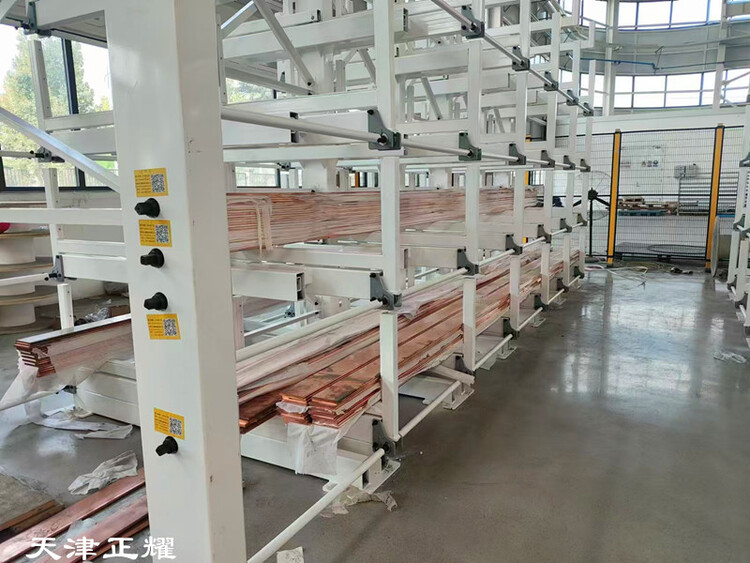 伸縮式型材貨架的核心優(yōu)勢在于其多層立體存儲(chǔ)結(jié)構(gòu)。這種結(jié)構(gòu)不僅提高了單位面積的存儲(chǔ)量,還使得型材的擺放更加有序和緊湊。每一層貨架都配備了伸縮式懸臂,每層懸臂都可以通過手動(dòng)搖出操作,使得工人在需要取用型材時(shí),只需將對應(yīng)的懸臂搖出,吊車即可直接進(jìn)行吊裝作業(yè),從而大大節(jié)省了巷道空間,提高了作業(yè)效率。