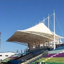 體育場(chǎng)看臺(tái) —— 體育看臺(tái)的頂篷的覆蓋面積大,而且不能影響觀眾視線,是典型的大跨度懸挑結(jié)構(gòu),這是傳統(tǒng)結(jié)構(gòu)在建造大跨度空間時(shí)所遇到的困難。而這一點(diǎn)膜結(jié)構(gòu)做到了,它通過與桁架結(jié)構(gòu)或索系支承結(jié)構(gòu)相結(jié)合,膜結(jié)構(gòu)可以實(shí)現(xiàn)目前世界上大的懸挑跨度。另外,膜結(jié)構(gòu)簡(jiǎn)潔優(yōu)美、富于變化的造型亦能帶來強(qiáng)烈的視覺效果,非常適合于建造體育類建筑。膜結(jié)構(gòu)可以實(shí)現(xiàn)目前世界上大的懸挑跨度,在全球眾多的大型足球場(chǎng)、場(chǎng)等得到采用。