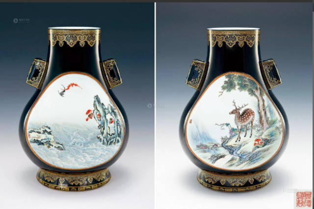 其作品多次送展多次獲獎。汪以俊不僅擅長繪畫技巧,且精于粉彩工藝。一支單色的珠明料筆在他手中卻能像水墨畫一樣揮灑自如,濃淡適宜,圓潤流暢,毫無滯澀之感,充分說明他對粉彩特性的利用達到何等精妙程度。縱觀他的作品,均是花有花形,鳥有鳥勢,頗為傳神生動。孔雀、白鶴、或棲或飛,或啄或躍,各具神態(tài)。撲蝶捕雀的小貍奴,穿山越澗的梅花鹿,其神其情,躍然紙上;筆調(diào)之清新、布局之活絡,明顯退去了煩瑣富麗的宮庭畫氣,具有濃郁的生活氣息。汪以俊作品頗多。