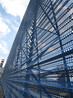防風(fēng)抑塵網(wǎng)是利用空氣動力學(xué)原理,按照實施現(xiàn)場環(huán)境風(fēng)洞實驗結(jié)果加工成一定幾何形狀、開孔率和不同孔形組合擋風(fēng)抑塵墻,使流通的空氣(強(qiáng)風(fēng))從外通過墻體時,在墻體內(nèi)側(cè)形成上、下干擾的氣流以達(dá)到外側(cè)強(qiáng)風(fēng),內(nèi)側(cè)弱風(fēng),外側(cè)小風(fēng),內(nèi)側(cè)無風(fēng)的效果,從而防止粉塵的飛揚。該技術(shù)在國內(nèi)處于地位。擋風(fēng)抑塵墻由立基礎(chǔ)、鋼結(jié)構(gòu)支撐、擋風(fēng)板三部分組成。